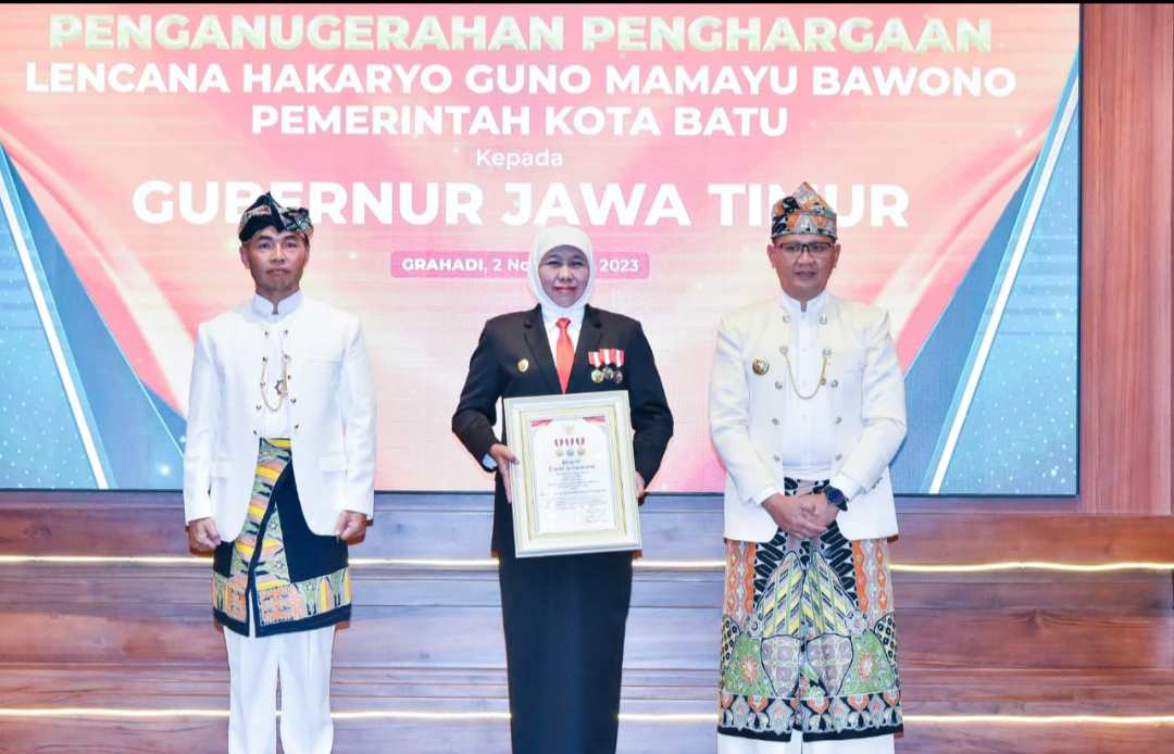 The post Gubernur Khofifah Terima Lencana Hakaryo Guno Mamayu Bawono dari Pemkot Batu appeared first on Media Berita Bangsa.